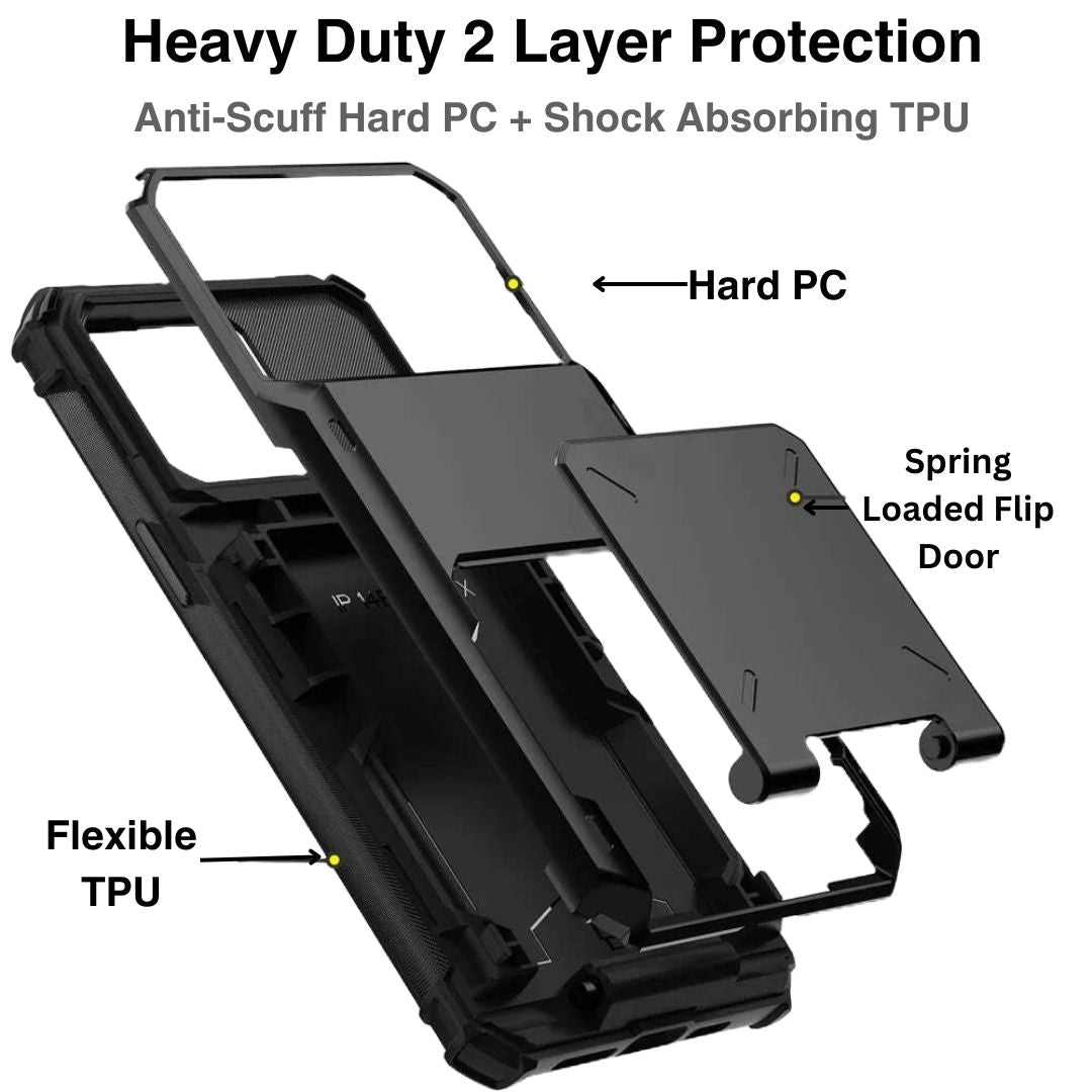 - Spring-Loaded Flip Door: The secure, spring-loaded flip door ensures that your cards stay in place, eliminating worries about accidental slips. Enjoy effortless access to your essentials while staying organized and clutter-free.